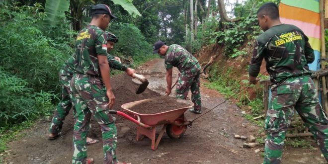 Kudus – Di tengah jalan yang sempit dan material tidak bisa sampai titik lokasi, semangat untuk mengabdi untuk Masyarakat telah di tunjukkan Satgas TNI Manunggal Membangun Desa (TMMD) Reguler-107, di Dukuh Mudal Rejo desa Kedungsari kecamatan gebog kabupaten kudus, dalam melangsir material pasir agar sampai di lokasi rehab Rumah Tidak Layak Huni (RTLH).