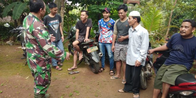 Kudus-menujukan Kepedulianya pada aktivitas kalangan remaja Dusun Talun, Anggota Satgas TNI manunggal membangun Desa, Desa Kedungsari Kecamatan Gebog. Rabo25/3/2020.