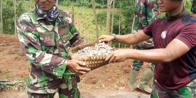 Danki atau Dan SSK TMMD ke-107 Kodim 0722 Kudus yang beasal dari Yonif 410/Alugoro Lettu Inf Sudiono turun langsung untuk membantu keberhasilan program pengecoran jalan.