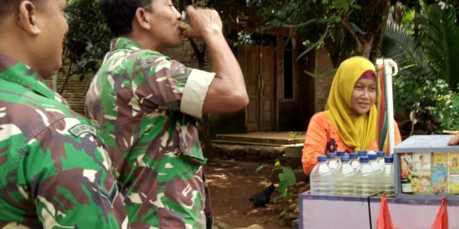 Kudus- Di -pagi hari situasinya cukup cerah penjual jamu dalam botol sudah kian surut tandas di minum para pelanggan setianya, sejak pagi hari anggota Satgas TNI manunggal membangun Desa(TMMD) Reguler Ke 107 Kodim 0722/Kudus.Selasa 31/3/2020.