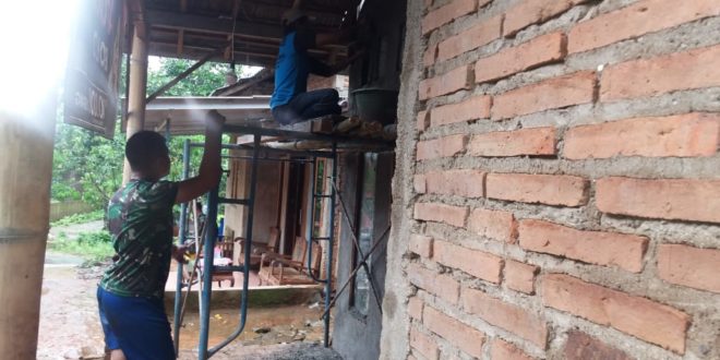 Kudus – Anggota Satgas TMMD Reguler ke-107 Kodim 0722/Kudus melaksanakan pengerjaan rumah Pak Pasri Rt 03/ VIII di Desa Kedungsari, Kecamatan Gebog, Kabupaten Kudus, baru tahap pertama, Rabu (01/04/2020).