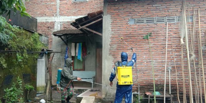 Kudus – Guna turut serta dalam pencegahan berkembangnya virus Corona,Satgas TMMD juga turut serta dalam penyemprotan disinfektan dalam menangkal serta pencegahan berkembangnya wabah virus Corona (covid-19),Jum’at (10/4/2020).