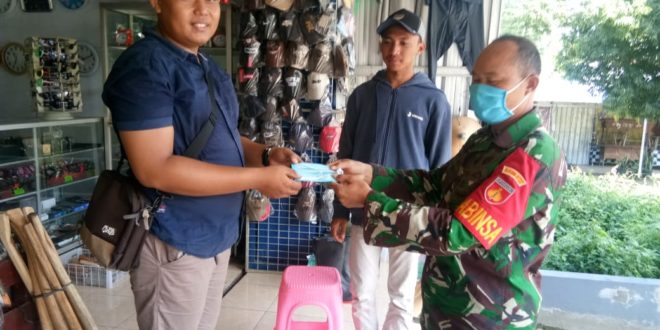 Kudus– Satgas TNI Manunggal Membangun Desa (TMMD) ke 107 membagikan masker kepada warga di Desa Kedungsari, Kecamatan Gebog, Kabupaten Kudus, Rabu 15/4/2020.