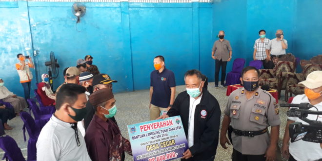 KIKIM TIMUR, LhL – Bertempat di Gedung Olahraga (GOR) Desa Cecar, Kecamatan Kikim Timur, Kabupaten Lahat, Bupati Lahat, Cik Ujang, SH didampingi sejumlah Organisasi Perangkat Daerah (OPD) Kabupaten Lahat, Camat Kikim Timur, Febroni, SE, Kapolsek Kikim Timur, Iptu. Syamsuardi dan Kepala Desa (Kades) Cecar, A. H. Juandi secara simbolis menyerahkan Bantuan Langsung Tunai (BLT) yang berasal dari Dana Desa (DD) untuk 102 warga dari 4 desa, yakni Desa Cecar, Datar Serdang, Lubuk Tampang dan Desa Gedung Agung.