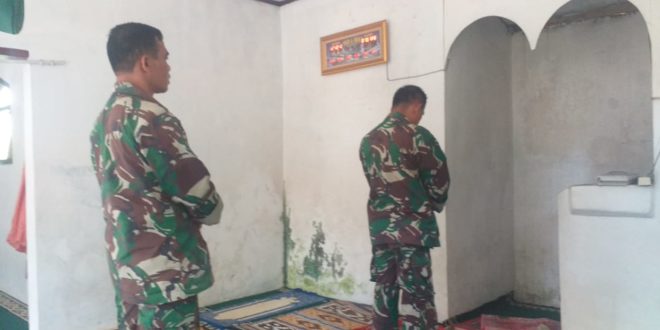 Nampak dua anggota Satgas TMMD itu, sedang melaksanakan Sholat Dzuhur berjemaah di salah satu Mushola yang berada di Kampung Kiara Koneng II Desa Talagasari Kecamatan Serangpanjang, yang menjadi lokasi kegiatan TMMD.