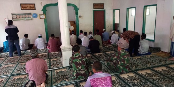 SUBANG – Personel Satgas TNI Manunggal Membangun Desa (TMMD) ke-108 Kodim 0605/Subang sholat Jumat bersama masyarakat di Masjid Al-Fadilah Desa Cijengkol Kecamatan Serangpanjang Kabuaten Subang, Jumat (10/7).