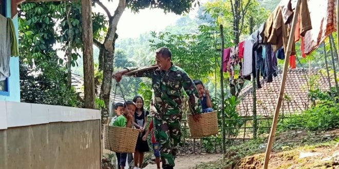 SUBANG- Ada-ada saja tingkah lucu sejumlah bocah mungil saat menggoda Satgas TMMD 108 Kodim 0605/Subang, ketika sedang melaksanakan pendorongan material Rehab Rumah Tidak Layak Huni (RTLH) di Dusun Kiara Koneng Desa Talagasari Kec. Serangpanjang, Kab. Subang. Minggu (12/07/2020)