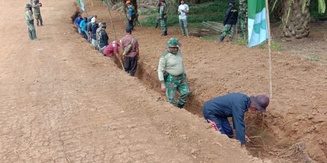 SUBANG – Program TMMD ke-108 Kodim 0605/Subang sudah memasuki hari ke-14, sasaran fisik berupa pembuatan parit disepanjang sisi jalan baru di Desa Talagasari Kecamatan Serang Panjang Kabupaten Subang terus dikebut oleh anggota Satgas TMMD. Selasa (14/7/20)