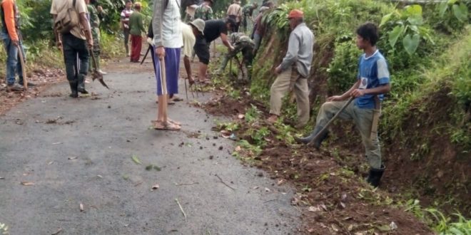 SUBANG- Satgas TNI Manunggal Membangun Desa(TMMD) Ke-108 Kodim 0605/Subang tahun 2020, hari ini Rabu (16/07/2020) melaksanakan kegiatan kerja bakti bersama warga berupa kegiatan membersihkan dan membuat parit di kanan kiri jalan di RT 15 RW 004 Kampung Talun Desa Talaga Sari Kecamatan Serangpanjang Kabupaten Subang.