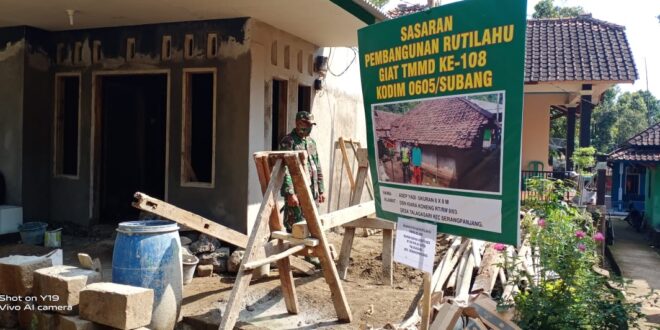 SUBANG- Sasaran pembangunan fisik dan non fisik TNI Manunggal Membangun Desa (TMMD) Ke-108 Kodim 0605/Subang di Desa Cintamekar Kecamatan Serangpanjang telah mencapai 80%. Hal itu diungkapkan oleh Pasiter Kodim 0605/Subang selaku Koordinator TMMD, Kapten Arm Agus Suprijadoi, Jum’at (17/7/20).