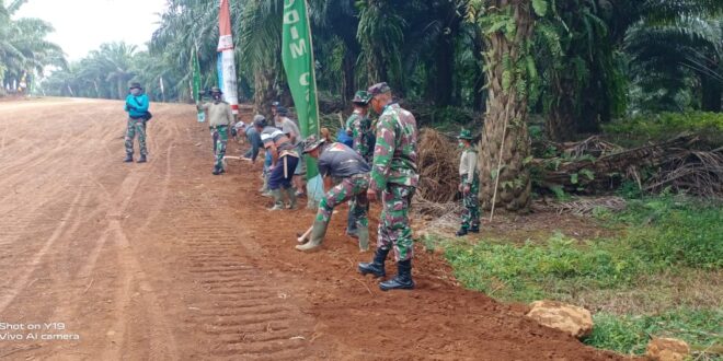 SUBANG- Personel TNI dan masyarakat , dibeberapa sasaran dalam kegiatan pelaksanaan TMMD Ke-108 Kodim 0605/Subang Tahun 2020 terus semangat dalam membangun desa dengan pola gotong royong, Jum’at (17/7/2020)