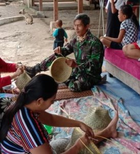 Ia bersama suaminya, mengaku senang dengan kedatangan Sertu Wawan Waliawan untuk membantu mengayam kerajinan bambu yang menjadi salah satu sumber kehidupan keluarganya.