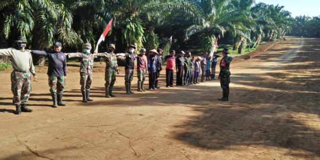 Hal ini bisa dilihat pada saat Satgas TMMD melaksanakan apel pagi di lokasi TMMD tepatnya di titik “0” sasaran fisik berupa pembukaan dan pembuatan jalan di Desa Telagasari Kecamatan Serangpanjang Kabupaten Subang, Sabtu (18/07/20).