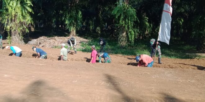 SUBANG – Memasuki hari ke-19 TMMD ke 108 Kodim 0605/Subang terlihat semangat gotong royong warga bahu membahu membantu satgas TMMD tak pernah kendor. ratusan warga tiap hari bahu membahu bekerja bersama satgas TMMD