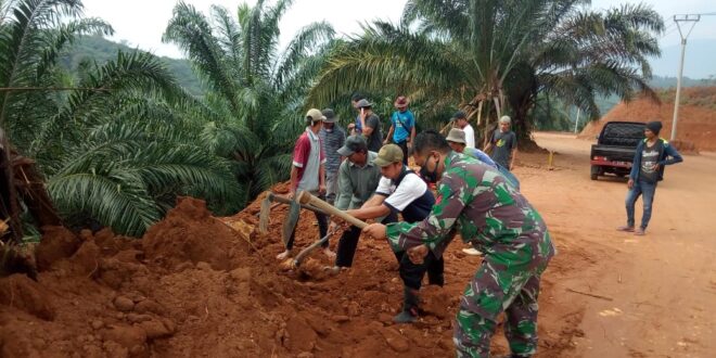 SUBANG,– Warga Desa Cintamekar Kecamatan Serangpanjang Kabupaten Subang Jawa Barat bersama Satgas TMMD dalam program TNI Manunggal Membangun Desa (TMMD) Ke-108 Kodim 0605/Subang Tahun Anggaran 2020, semangat ikuti pembukaan jalan baru penghubung antara Kecamatan Serangpanjang dengan Kecamatan Cipeundeuy Kabupaten Subang,.