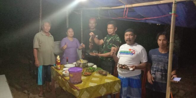 Kedekatan dan keakraban antara Satgas TMMD dan warga terlihat saat melaksanakan bakar ikan bersama di waktu malam hari di salah satu rumah warga di Desa Telagasari kecamatan Serang Panjang kabupaten Subang. Senin (26/07/20).