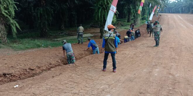 SUBANG–Warga Desa Talagasari, Kecamatan Serang Panjang, Kabupaten Subang, masih antusias Bergotong-royong bersama di hari terakhir di lokasi TNI Manunggal Membangun Desa (TMMD) ke-108. Selasa (28/07/20)
