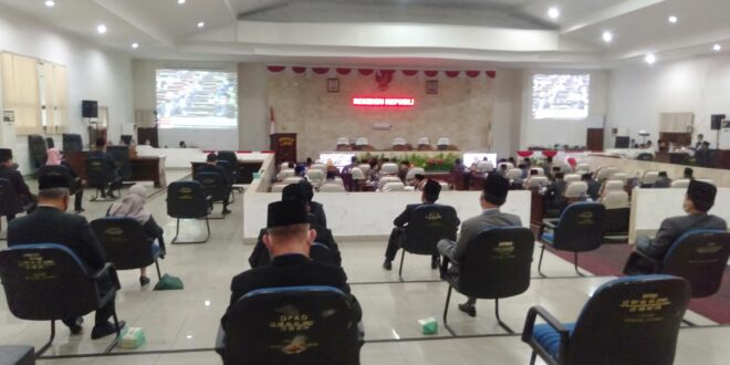 LAHAT, LhL – Dewan Perwakilan Rakyat Daerah (DPRD) Kabupaten Lahat bersama Pemerintah Kabupaten Lahat, melakukan Rapat Paripurna ke- XVI masa Persidangan ketiga tahun sidang 2020 dalam rangka mendengarkan Pidato Kenegaraan Presiden Republik Indonesia Perayaan hari Jadi Republik Indonesia perayaan ke 75. Bertempat di ruang rapat utama DPRD Kabupaten Lahat, Jumat (14/08).