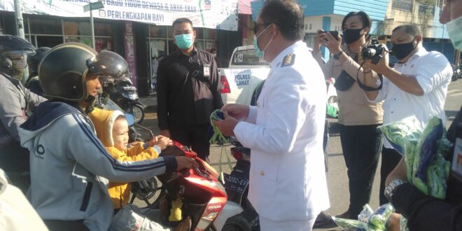 LAHAT, LhL – Usai melakukan Upacara Bendera Merah Putih, dalam rangka memperingati hari jadi Republik Indonesia yang ke 75, Bupati Lahat berserta rombongan menujuh ke Pasar Lematang (Simpang Empat Lampu Merah) untuk membagikan Masker kepada para pengendara, Pedagang dan Masyarakat. Minggu (17/08).
