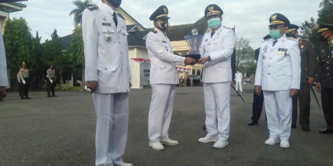 Penghargaan diberikan langsung Bupati Lahat Cik Ujang SH, dan Wakil Bupati Lahat H, Haryanto, SE, MM, MBA, seusai melaksanakan Upacara Bendera HUT RI ke 75 di Lapangan Pemkab Lahat.