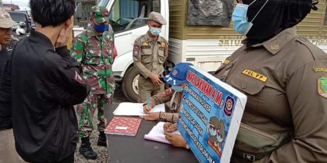 EMPAT LAWANG, LhL – Komando Distrik Militer (Kodim) 0405/Lahat, Dalam rangka mencegah penyebaran Covid 19 di wilayah Teritorial Koramil 405-01/Tebing Tinggi, Personel Koramil 405-01/Tebing Tinggi bersama Tim Gugus Tugas Kecamatan Tebing Tinggi melaksanakan kegiatan Operasi Yustisi dan penegakan Disiplin Protokol kesehatan Di Depan hotel cemerlang Kelurahan tanjung beringin Kecamatan Tebing Tinggi, Kamis (10/12/2020).