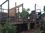 “Alhamdulillah, hari ini kami sekeluarga dibantu oleh kerabat, teman dan masyarakat akan Meleghak Ghumah panggung kami ini, yang akan kami renovasi nantinya, “ujar Joni.