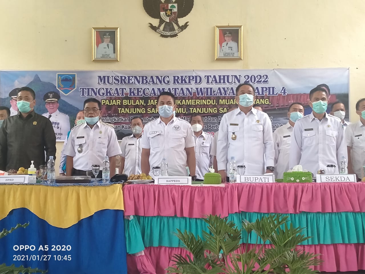“Masing-masing untuk Kecamatan Pajar Bulan 1,1 Miliyar lebih, Tanjung Sakti Pumi 3.6 Miliyar lebih, Tanjung Sakti Pumu 3,2 Miliyar, Muara Payang 1,3 Miliyar, Jarai 2,3 Miliyar lebih dan Kecamatan Sukamerindu sebesar 1,1 Miliyar lebih”, urai Cik Ujang, saat pembukaan Musyawarah Rencana Pembangunan (Musrenbang) RKPD Tahun 2022 di aula Kantor Camat Pajar Bulan, Rabu (27/1/2021).
