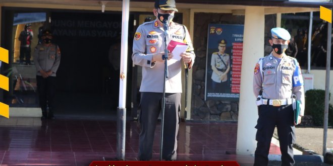 LAHAT, LhL – Bertempat di halaman Kantor Polres Lahat, pada Kamis tanggal 11 februari 2021, pukul 08.00 WIB. Kapolres Lahat, AKBP. Achmad Gusti Hartono S.IK pimpin Apel Kesiapan Tenaga Vaksinator dan Tracer Covid-19.