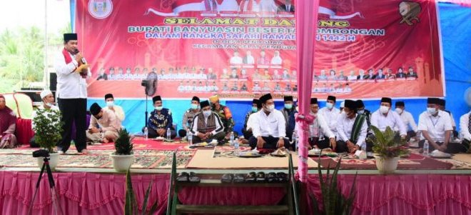 BANYUASIN, LhL – Bupati Banyuasin H. Askolani didampingi Wakil Bupati Banyuasin melaksanakan Safari Ramadhan, Buka Bersama dan Tarawih Keliling di Masjid Jami’al Muttaqin Desa Penugukan Kecamatan Selat Penuguan Kabupaten Banyuasin Sabtu 1 Mei 2021.