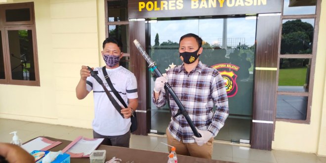 samurai sambil berteriak agar warga Tebing Abang keluar dan menutup jalan. Kemudian kedua orang tersebut kami ajak negosiasi dan 1 (satu) Buah samurai yang mereka bawa berhasil kami amankan,”jelasnya.