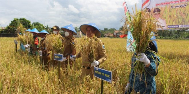 LAHAT SELATAN, LhL – Pemerintah Daerah Kabupaten Lahat, melalui Dinas Pertanian Kabupaten Lahat melakukan kegiatan Panen Padi bersama dalam rangka kegiatan penerapan sistem tanam Peluasan Area Tanam Baru (PATB) tahun 2020 Kabupaten Lahat Provinsi Sumatera Selatan. Bertempat di Desa Tanjung Payang Kecamatan Lahat Selatan Kabupaten Lahat, Senin (14/06).