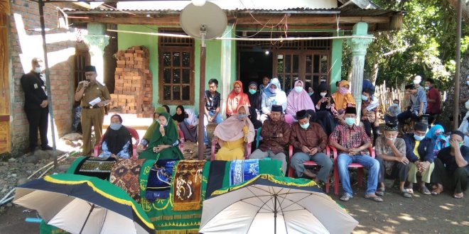 Kedatangan Wakil Bupati Lahat H. Haryanto, SE, MM disambut oleh keluarga Almarhum Suhaimi Bin Majuni, dengan menjalankan prokes kesehatan dimasa pademik Covid- 19, memakai Masker, Cuci tangan serta menjaga jarak.