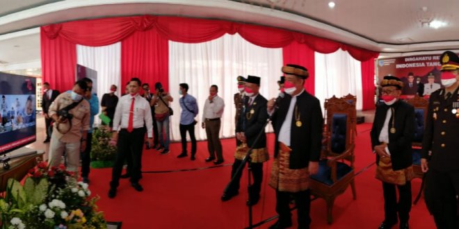 Setelah mengikuti upacara detik-detik proklamasi kemerdekaan Republik Indonesia yang ke-76 tahun Bupati Lahat Cik Ujang S.H didampingi oleh para Forkompimda Lahat menyapa rombongan 24 Kecamatan yang melaksanakan upacara melalui Virtual.
