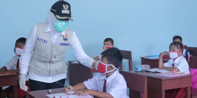 PALEMBANG, LhL-Wakil Wali Kota Palembang Fitrianti Agustinda, Jumat (10/9.2021), memantau pelaksanaan Pembelajaran Tatap Muka (PTM) di SD Negeri 72 dan SD Negeri 88.