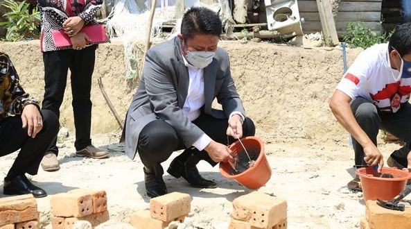 PALEMBANG, LhL – Gubernur Provinsi Sumatera Selatan (Sumsel) H. Herman Deru didampingi oleh Bupati Kabupaten Oku Timur H. Lanosin, ST, Wakil Bupati Oku Timur H. M. Adi Nugraha Purna Yudha, SH, dan Kapolres Kabupaten Oku Timur AKBP Dlizon, meletakkan batu pertama pembangunan bedah rumah sekaligus penyerahan bantuan beras kepada masyarakat terdampak bencana di Desa Bantan, Kecamatan Bp Peliung Kabupaten Oku Timur. Minggu (19/9) Siang.