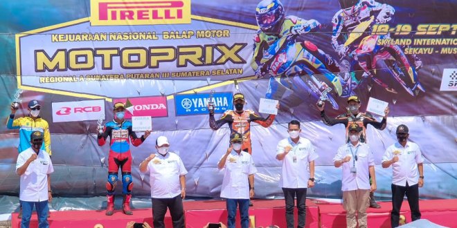 MUBA, LhL – Tidak hanya sukses menjadi tuan rumah perhelatan ajang bergengsi Motoprix Region A Putaran 3 Sumsel Piala Presiden 2021, namun Kabupaten Muba dibawah kepemimpinan Bupati Dr Dodi Reza Alex Noerdin Lic Econ MBA juga berhasil menempatkan pembalap binaan PPLP-D Muba menjuarai Motoprix Piala Presiden 2021 yang digelar 18-19 September 2021 di Sirkuit Internasional Skyland.