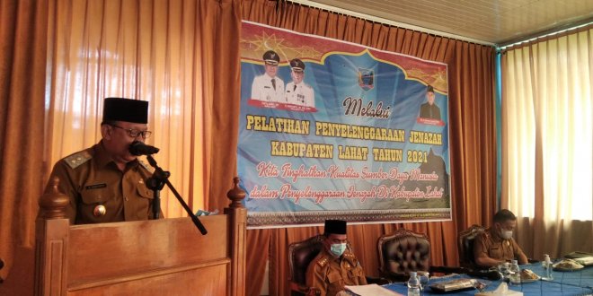 LAHAT, LhL – Pemerintah Daerah Kabupaten Lahat Provinsi Sumatera Selatan, melalui Bagian Kesrah Setda Lahat melakukan kegiatan pelatihan penyelenggaraan pengurusan Jenazah di Ballromm Hotel Bukit Tunjuk, Selasa (21/09).