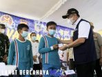 Kegiatan dilanjutkan dengan meninjau pelaksanaan vaksinasi dan penyerahan Kartu Vaksin secara simbolis kepada peserta vaksin.