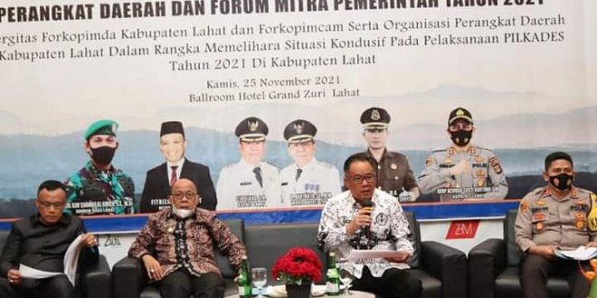 Adapun acara pada hari ini mengambil tema “Sinergitas Forkopimda Kabupaten dan Forkopimcam serta Organisasi Perangkat Daerah Se- Kabupaten Lahat dalam memelihara Situasi kondusif pada pelaksanaan Pilkades Tahun 2021 di Kabupaten Lahat.” Kamis (25/11/202 ). Bertempat di Ball Room Hotel Grand Zury Lahat.