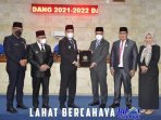 LAHAT, LhL – Bupati Lahat Cik Ujang.SH didampingi Wakil Bupati Lahat H.Haryanto.SE MM menghadiri Rapat Paripurna IV DPRD Kabupaten Lahat dalam rangka mendengarkan mendapat akhir Fraksi terhadap Raperda tentang APBD Kabupaten Lahat Tahun Anggaran 2022 dan Pengambilan serta Penandatangan keputusan bersama. Jumat (26/11/2021), bertempat di Ruang Rapat Utama DPRD Lahat.