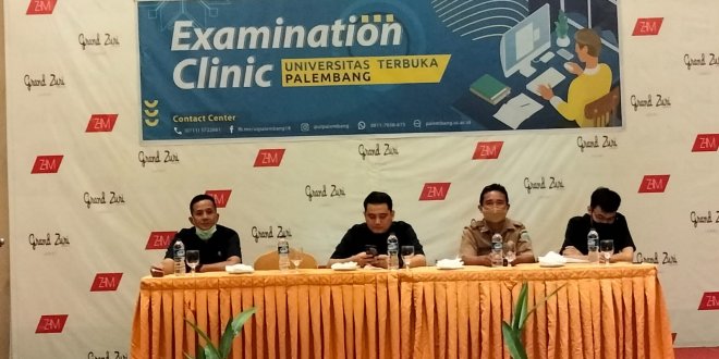 LAHAT, LhL – Sentra Pelayanan Universitas Terbuka (Salut) Lahat sebagai Pokjar dari Perguruan Tinggi Negeri Universitas Terbuka (UT)  akan segera melaksanakan Ujian Akhir Semester (UAS) secara online, yang dikenal dengan sebutan Take Home Exam (THE), hal ini disampaikan oleh Penanggungjawab Kelompok Belajar Universitas Terbuka Kabupaten Lahat Tusiran SPd saat pembukaan Examination Clinic (Pelatihan Ujian) di Ballroom Hotel Grand Zury Lahat, Selasa (30/11/2021).