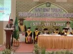 Sambutan Ketua STIT-YPI Lahat Drs. Taufik Syakni, M.Pd.I, mengucapkan terimakasih kepada Bupati Lahat, Unsur Forkopimda Kabupaten Lahat yang mana telah menyempatkan waktu untuk hadir di acara Wisuda Sarjana STIT- YPI Lahat