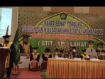 LAHAT, LhL – Bertempat di Ballroom Hotel Grand Zuri Lahat, telah digelar kegiatan Rapat Senat terbuka Yudisium dan Wisuda Sarjana Stratai I Angkatan XX Sekolah Ilmu Tarbiyah Yayasan Pendidikan Islam (STIT- YPI) Lahat. Kamis (16/12).