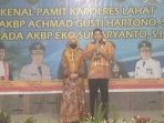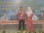 Sementara Kapolres Lahat yang baru AKBP Eko Sumaryanto, SIK didampingi Istrinya, mengucapkan terimakasih kepada Pemkab Lahat, Unsur Forkompinda serta jajaran Polres Lahat yang mana telah menyambut dengan sangat baik didalam acara kenal pamit ini.