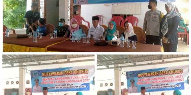 Musyawarah desa khusus ini dibuka langsung oleh Distrimiana ketua BPD Desa Pajar bulan. Musdes ini untuk memvalidasi dan finalisasi mengenai penyerahan BLT-DD kepada keluarga penerima manfaat (KPM). Karena BLT-DD tahun 2022 diambil 40% dari pagu anggaran dana desa, untuk ketahanan pangan 20%, seperti Kolam Kandang Kebun, dan 8% untuk Pencegahan covid-19, Jadi sisa dari pagu tinggal 32%.