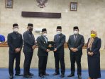 Sebelum mendengarkan sambutan dari Bupati Lahat Cik Ujang yang akan disampaikan oleh Wakil Bupati H. Haryanto, dilakukan terlebih dahulu penandatanganan nota persetujuan terhadap 9 (Sembilan) Raperda Kabupaten Lahat.