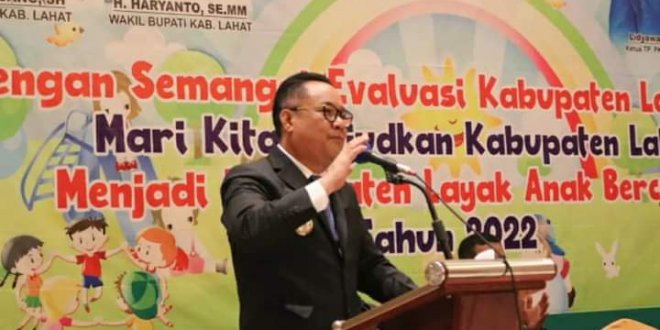 Bupati Lahat, Cik Ujang.SH dalam sambutannya mengatakan, pada hari ini melaksanakan evaluasi Kabupaten Lahat layak anak secara bersama sama dengan didampingi oleh Tim Independent Kabupaten Lahat layak anak jakarta, dengan harapan pada tahun 2022 percepatan Kabupaten Layak anak dapat terwujud minimal predikat pertama syukur bisa langsung kepredikat madya, sebagaimana surat Gubernur Sum Sel atas surat Menteri pemberdayaan perempuan dan perlindungan anak agar kita setiap kabupaten/kota untuk melakukan percepatan mewujudkan kabupaten layak anak guna mempercepat Provinsi layak anak dan akhirnya mencapai indonesia layak anak.