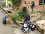 Dengan membawa peralatan sendiri dari rumah, Karang Taruna Desa sangat bersemangat melaksanakan kegiatan gotong royong tersebut.