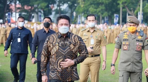 Di dalam barisan, Gubernur berprestasi itu mengecek sejumlah atribut kelengkapan seragam peserta apel. Dari beberapa staf yang dihampirinya, Herman Deru tampak mengingatkan soal kelengkapan dan kerapian penggunaan atribut seragam PNS khususnya para staf pria.