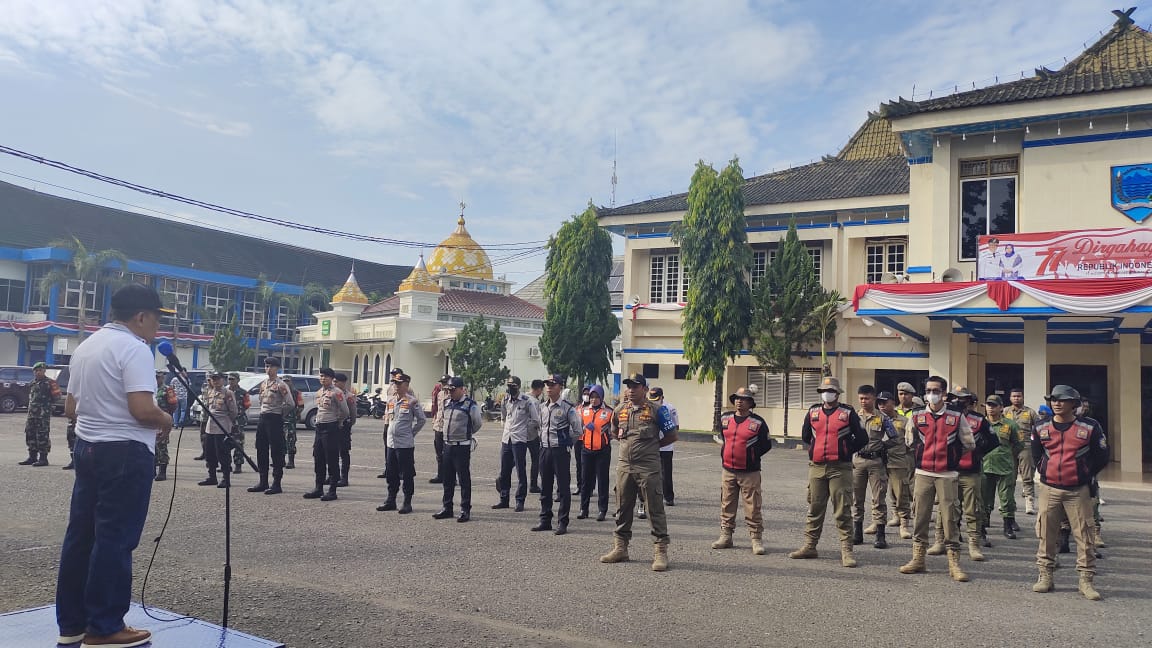 LAHAT, LhL – Bertempat di halaman Gedung Pemerintah Kabupaten Lahat, diadakan Apel Gabungan antara Pol PP, TNI, Polri, Dishub dan instansi terkait dalam upaya penertiban Pedagang Kaki Lima (PKL) yang ada di dalam Kota Lahat, Jum’at (29/07/2022).